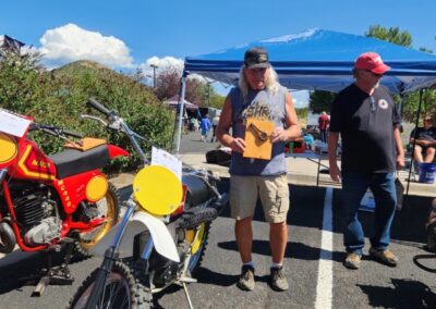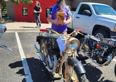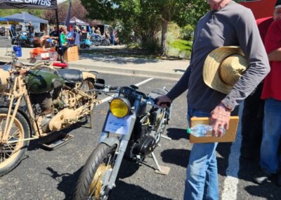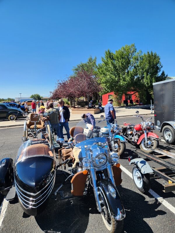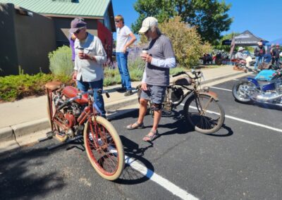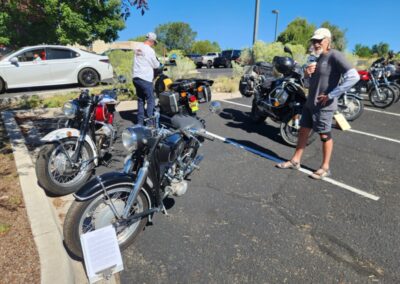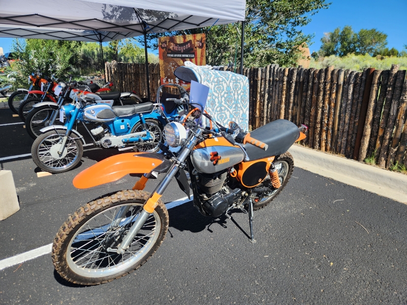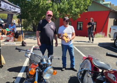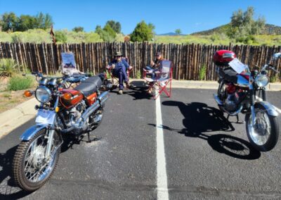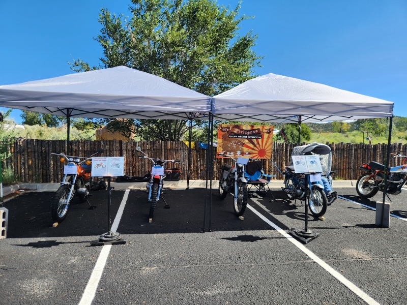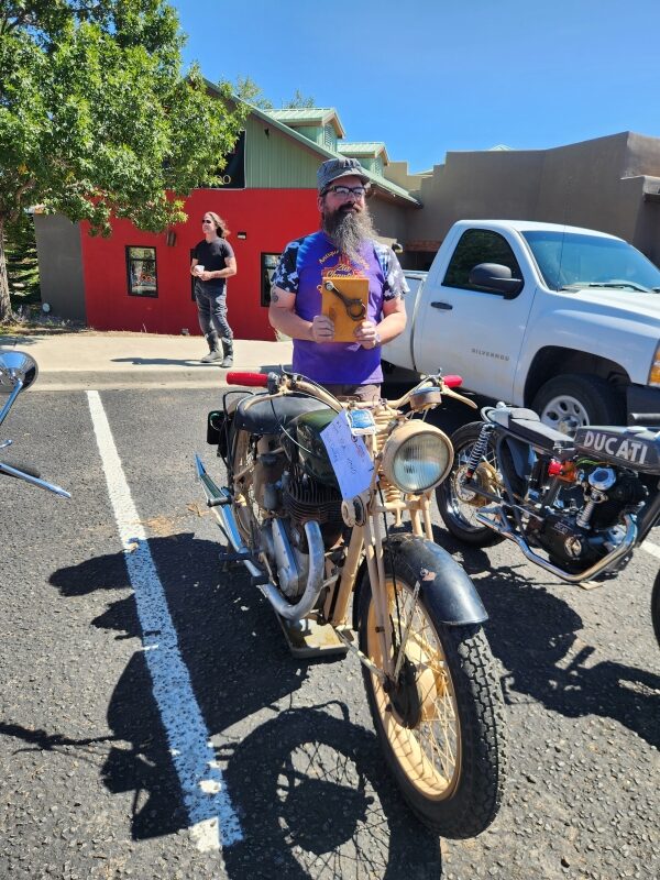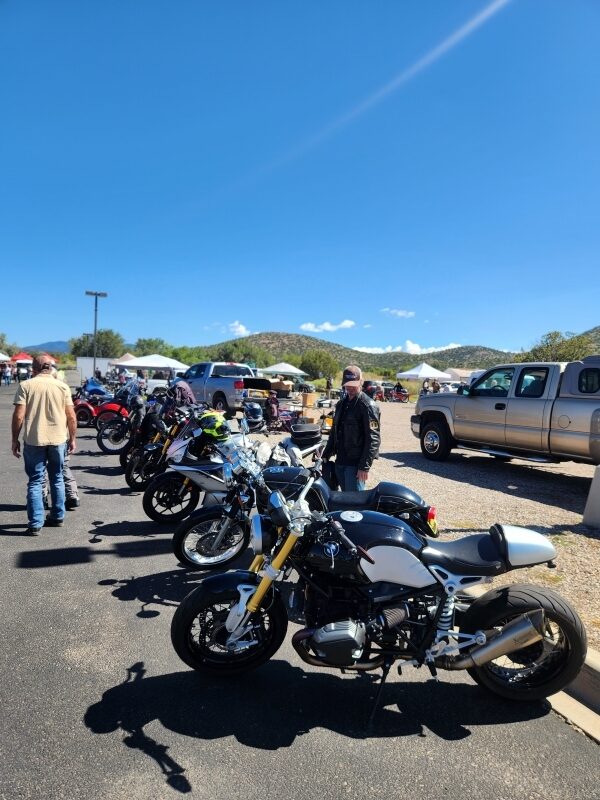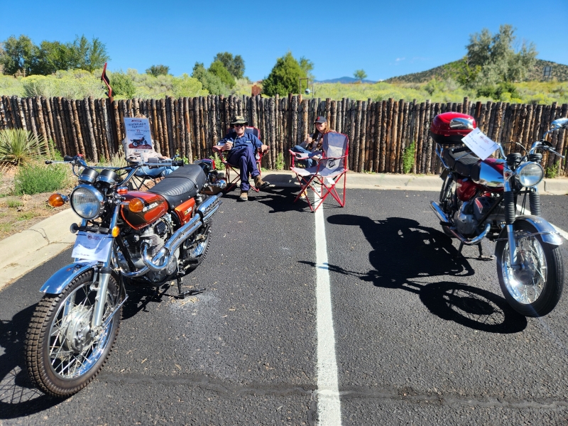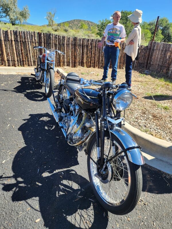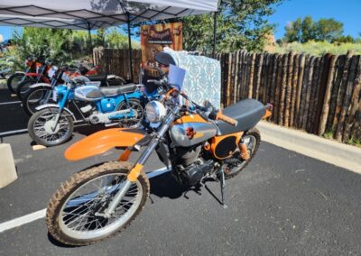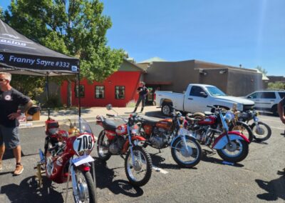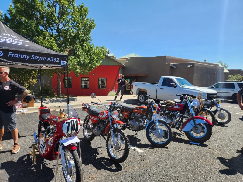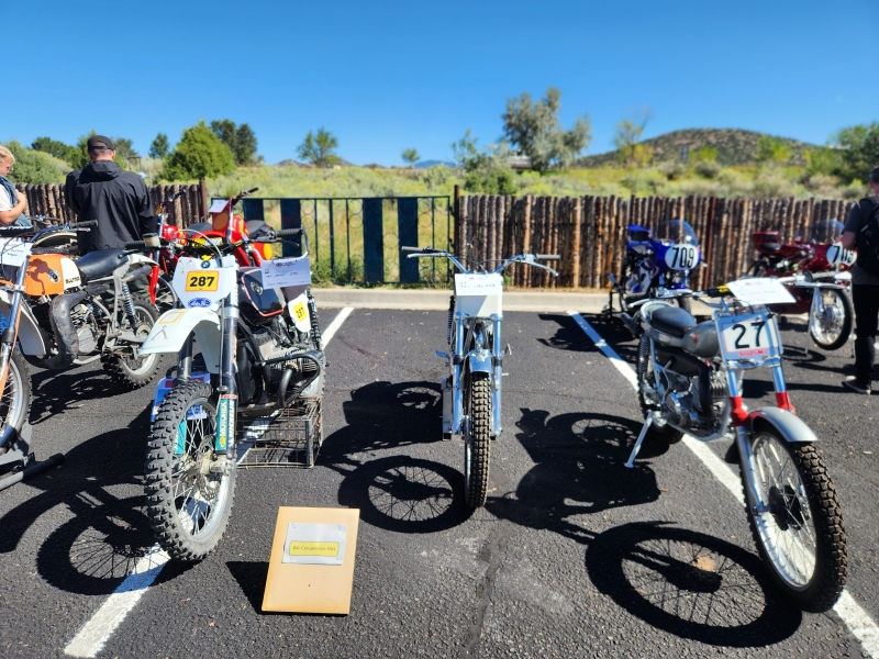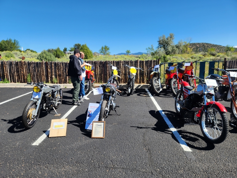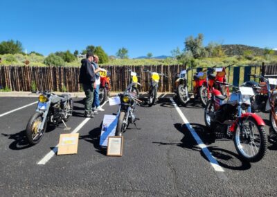 This year’s 10th Edition of the Motorado Motorcycle Classic Show was really amazing! Some beautiful old machines showed up to be judged and gawked at. There was a healthy turn-out of Sponsors which really makes the show financially possible. THANK YOU!!!! Also the volunteers that helped set up, man the front tent, help with the unloading of the exhibitors. Special thanks to Steve for once again letting the show happen on the grounds of La Tienda at no charge. All proceeds this year went to Espanola Humane. They had an adoption booth and some of those annimals went to their forever home.